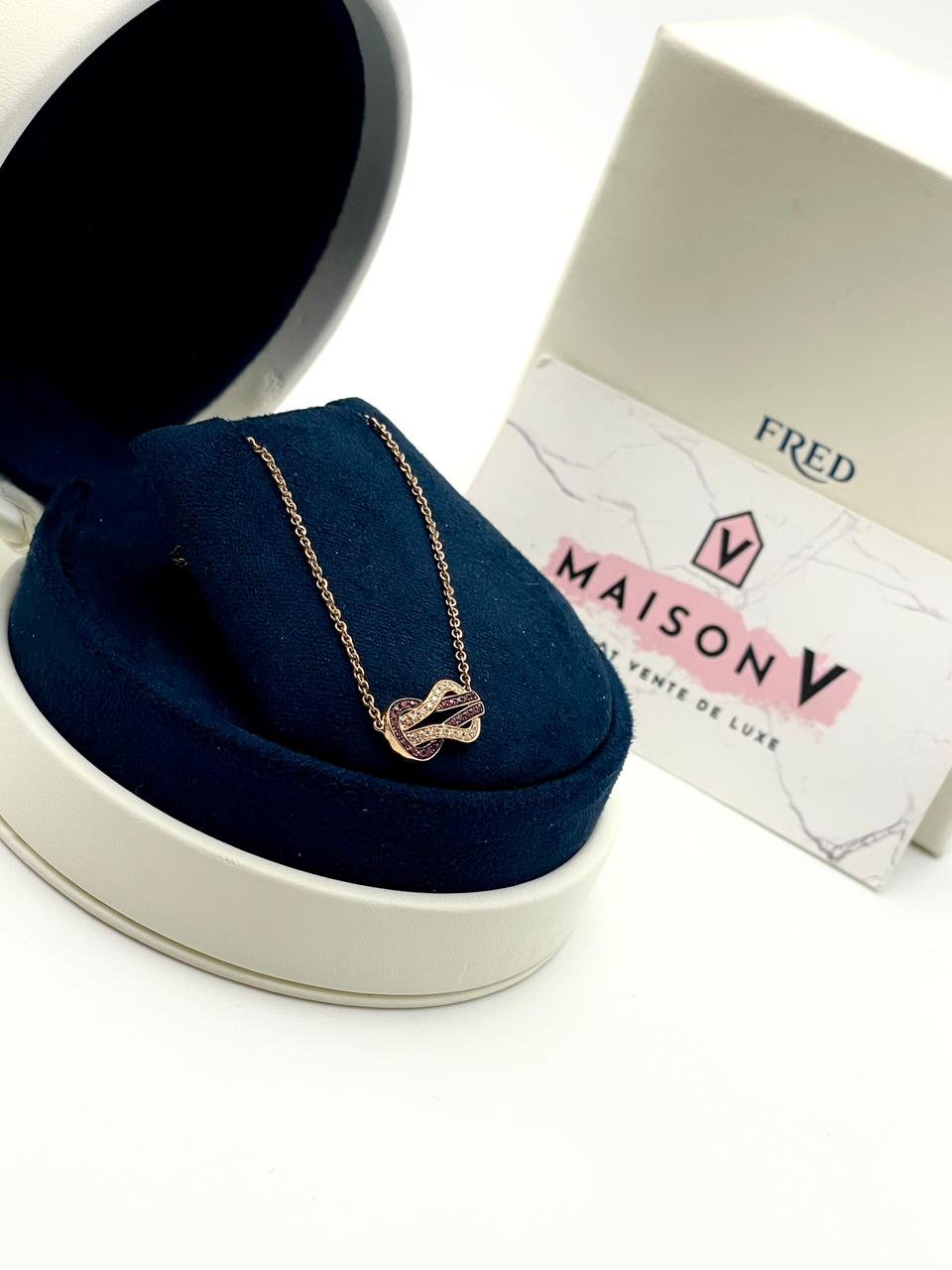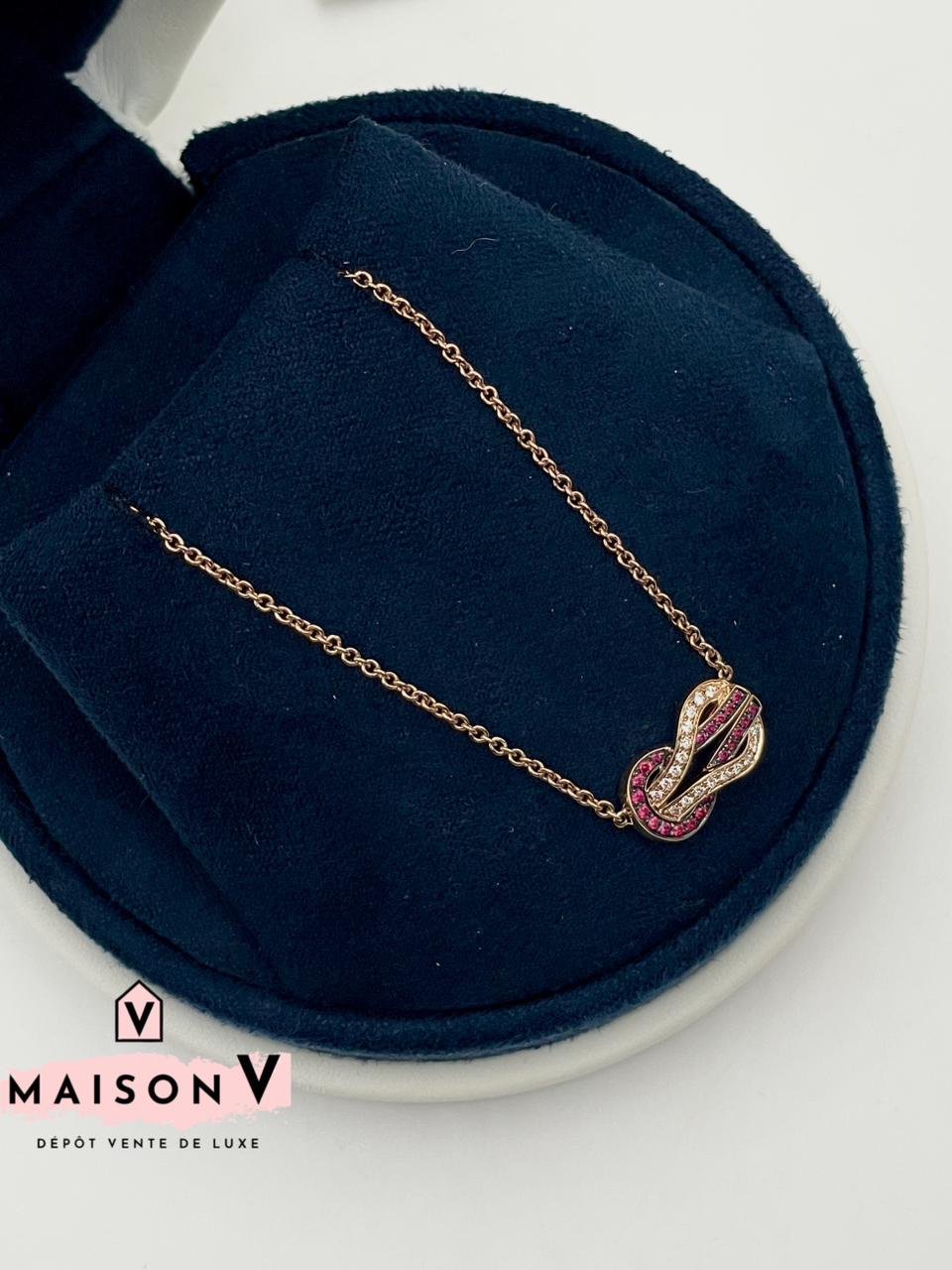 Collier Fred Chance Infinie , moyen modèle or rose ,rubis et diamants