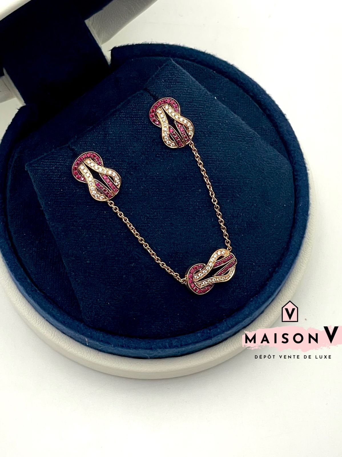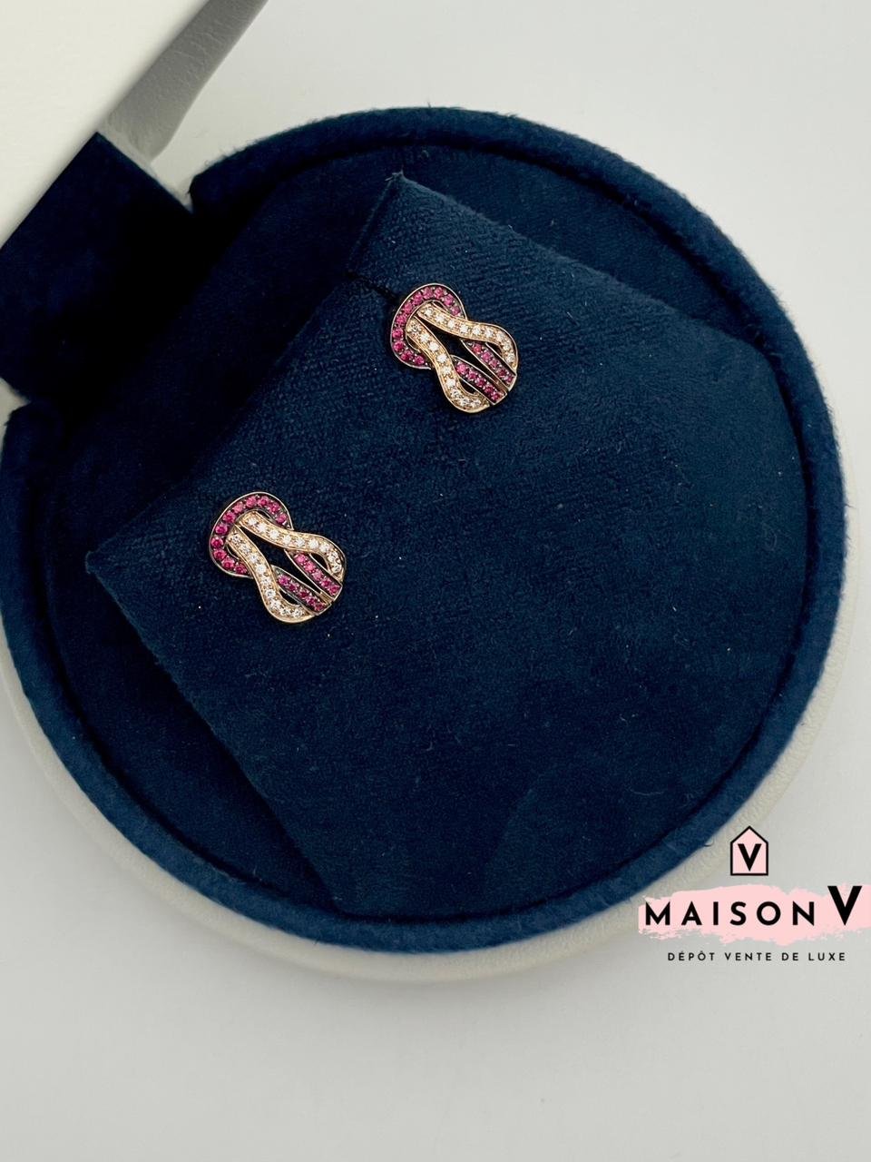 Boucles d’oreilles Fred Chance Infinie , moyen modèle or rose , rubis et diamants