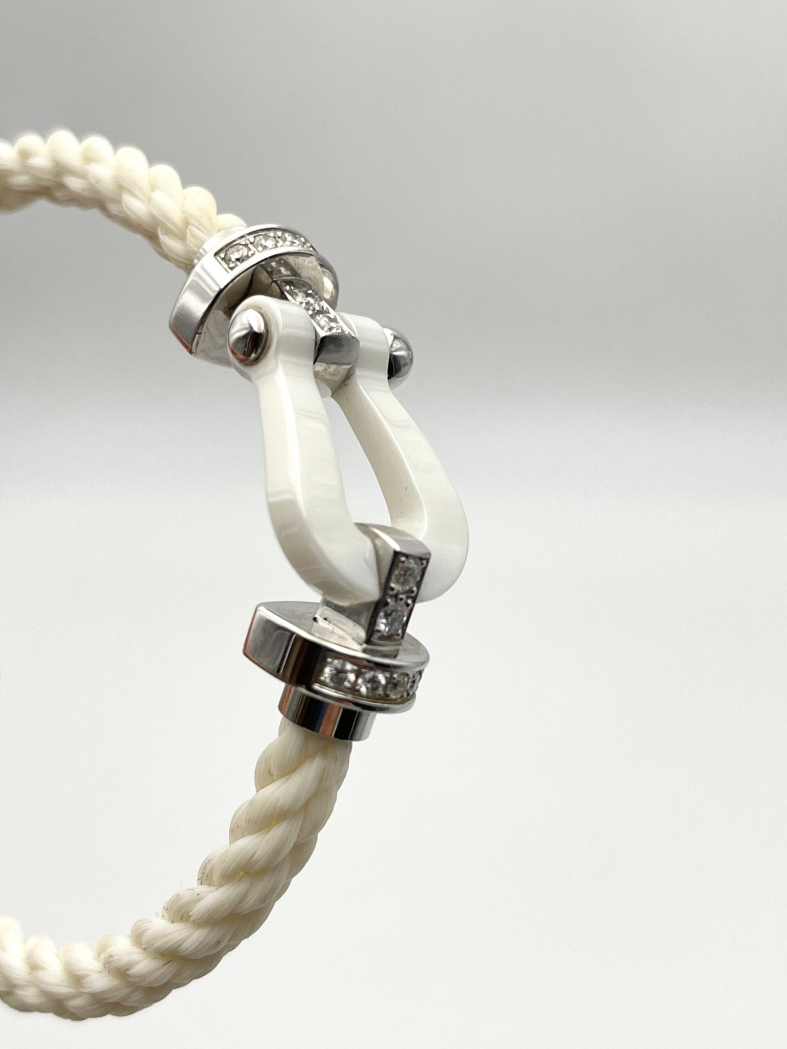 Boucle en céramique blanche acier serti